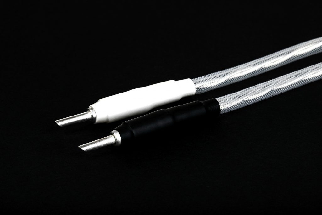 The newly developed antistatic mesh outer layer not only gives the Singular silver series speaker cables a special and unique appearance, but also keeps static fields from the environment away from the conductors.